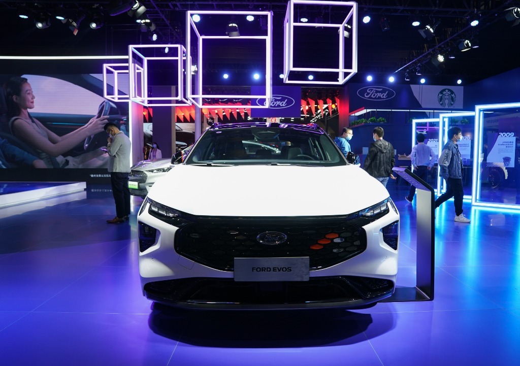 2021年11月5日在進(jìn)博會(huì)汽車展區(qū)拍攝的福特新能源汽車。新華社記者丁汀攝