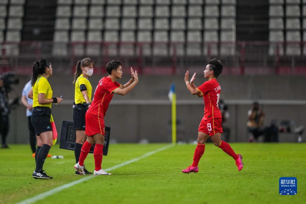 7月23日,中國隊球員王霜(右二)在比賽中替換隊友張琳艷上場。新華社記者 張笑宇 攝