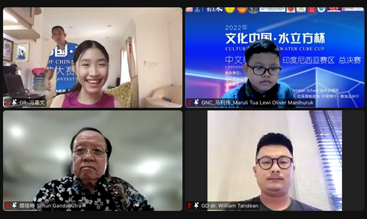人民網(wǎng)雅加達(dá)7月24日電 (記者張杰)24日,由印尼雅加達(dá)華文教育協(xié)調(diào)機(jī)構(gòu)(以下簡稱“雅協(xié)”)承辦的2022年“文化中國·水立方杯”中文歌曲大賽印尼賽區(qū)總決賽在雅加達(dá)萊佛士學(xué)校PI校區(qū)采用線上線下相結(jié)合的方式順利舉行。