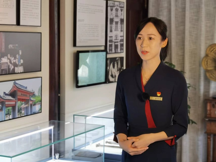 6月9日,張人亞黨章學(xué)堂講解員童思琪在鏡頭前講述張人亞的故事。新華社記者顧小立攝