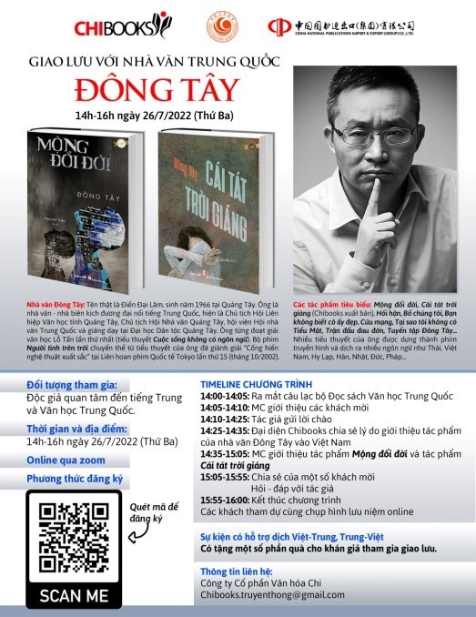 人民網(wǎng)北京7月29日電 (記者戴楷然)7月26日,越南“中國(guó)文學(xué)讀者俱樂(lè)部”在越南胡志明市正式成立,并成功舉辦了俱樂(lè)部的首場(chǎng)活動(dòng)“東西《篡改的命》在線座談會(huì)”,活動(dòng)同步在越南CHIBOOKS官網(wǎng)上直播。參加活動(dòng)的嘉賓有中國(guó)作家東西、中國(guó)駐越南大使館文化參贊彭世團(tuán)、越南胡志明市作家協(xié)會(huì)主席鄭碧銀、越南芝文化股份公司總經(jīng)理阮麗芝,還有對(duì)中國(guó)語(yǔ)言、文化感興趣的各界人士以及當(dāng)?shù)刈骷?、編輯、譯者、大學(xué)生等近40人。