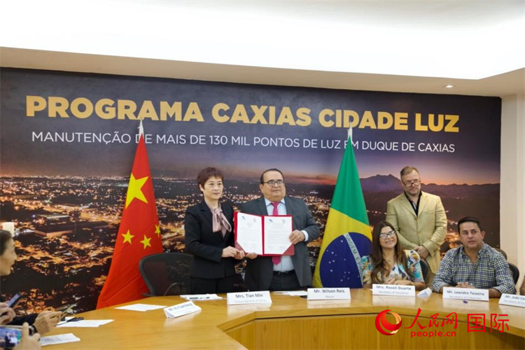 廣州市南沙區(qū)與巴西里約熱內(nèi)盧州卡希亞斯公爵市加強(qiáng)交流合作備忘錄簽約儀式舉行。人民網(wǎng)記者 畢夢瀛攝