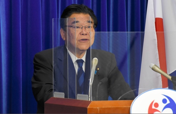 日本厚生勞動(dòng)大臣后藤茂之出席記者會(huì)。(圖片來源:《朝日新聞》)