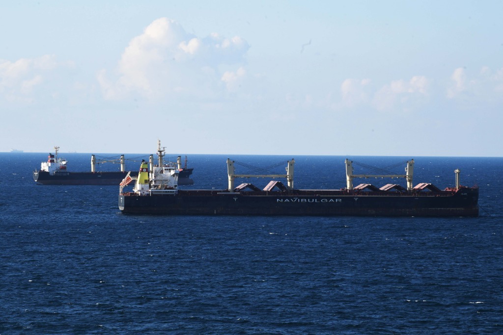 8月6日,從烏克蘭出發(fā)的第二批運(yùn)糧船抵達(dá)土耳其伊斯坦布爾的博斯普魯斯海峽黑海入??诟浇?。新華社記者沙達(dá)提攝