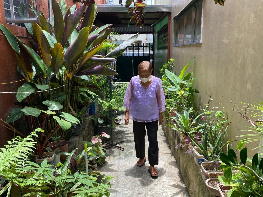 7月29日,在菲律賓“慰安婦”權(quán)益保護(hù)組織“菲律賓祖母聯(lián)盟”辦公區(qū),埃斯特莉塔走過(guò)庭院。新華社記者劉鍇攝