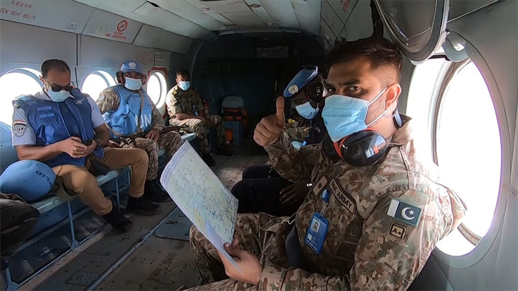 軍事觀察員在直升機(jī)上工作。維和直升機(jī)分隊(duì)供圖 |