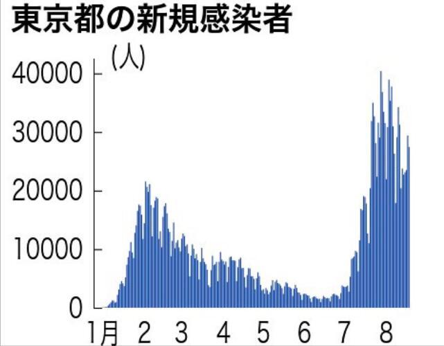 8月18日,東京都新增確診病例2萬7453例,單日新增與上周四相比減少了3794例。截至8月18日,東京都最近一周的日均新增確診病例數(shù)為2萬4347例,是前一周的82.1%。