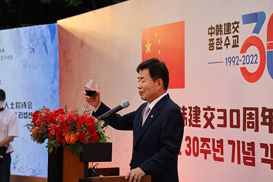 中國駐韓國大使館22日在首爾舉行“紀念中韓建交三十周年各界人士招待會”。中國駐韓國大使館供圖