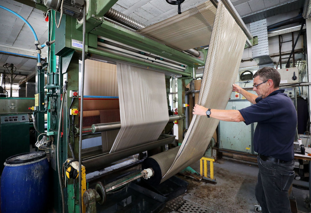 ↑8月11日,工人在英國麥克爾斯菲爾德一家絲綢工廠內(nèi)工作。