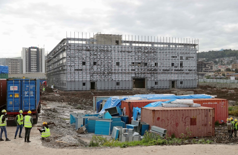 援非盟非洲疾控中心施工技術(shù)組組長(zhǎng)高葭葭告訴記者,目前該項(xiàng)目已完成整體進(jìn)度的76%,接下來(lái)還有幕墻、機(jī)電安裝和內(nèi)部裝修等工作,預(yù)計(jì)今年12月完工。