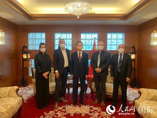 崔愛民大使會(huì)見瑞典孵化器科技園協(xié)會(huì)(SISP)總裁厄德馬克。 人民網(wǎng) 王文攝
