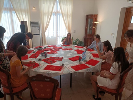 大使館的工作人員為這些學(xué)生們準(zhǔn)備了中國美食、趣味中文游戲、打乒乓球以及剪紙、書法體驗(yàn)等活動(dòng)。