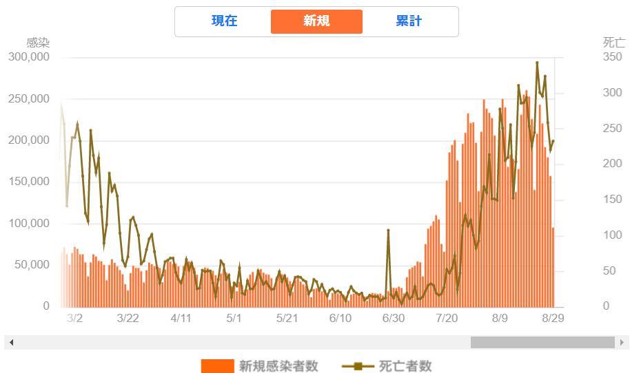 人民網(wǎng)東京8月30日電 綜合日媒報(bào)道,8月29日,日本全國新增新冠肺炎確診病例9萬6145例,單日新增自7月19日以來再次降至10萬例以下。當(dāng)日新增死亡病例233例,現(xiàn)有重癥病例628例。