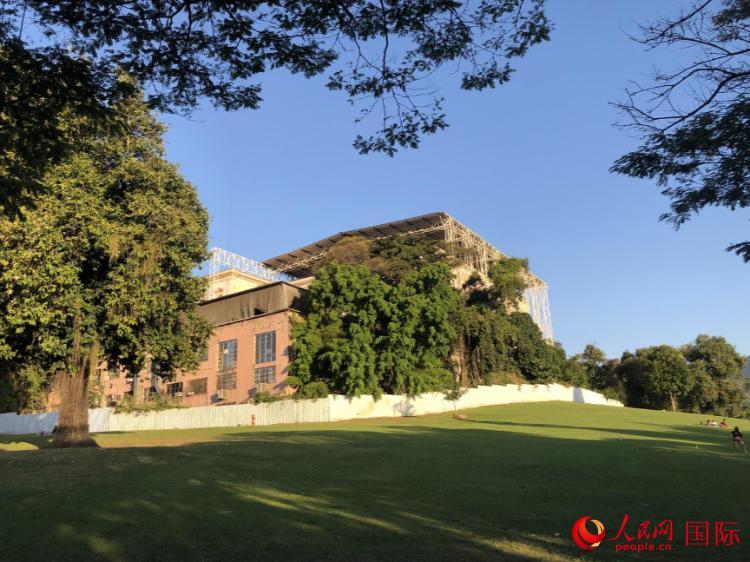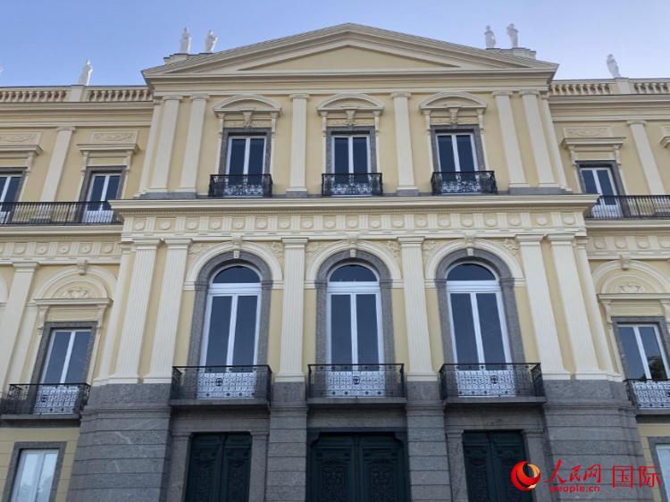 在慘遭大火焚毀4年后,巴西國家博物館主建筑圣克里斯托旺宮的外立面和前花園9月2日修復(fù)完工。人民網(wǎng)記者 陳一鳴攝 |