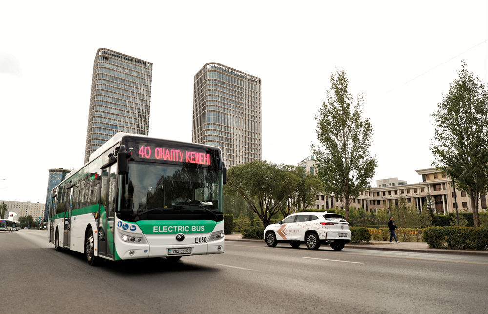 ↑宇通牌電動(dòng)公交車(chē)行駛在哈薩克斯坦努爾蘇丹的道路上(2022年9月10日攝)。中國(guó)宇通客車(chē)股份有限公司和哈薩克技術(shù)公司合資建設(shè)的CKD工廠生產(chǎn)純電動(dòng)客車(chē)及符合歐V排放標(biāo)準(zhǔn)的環(huán)保公交車(chē)。