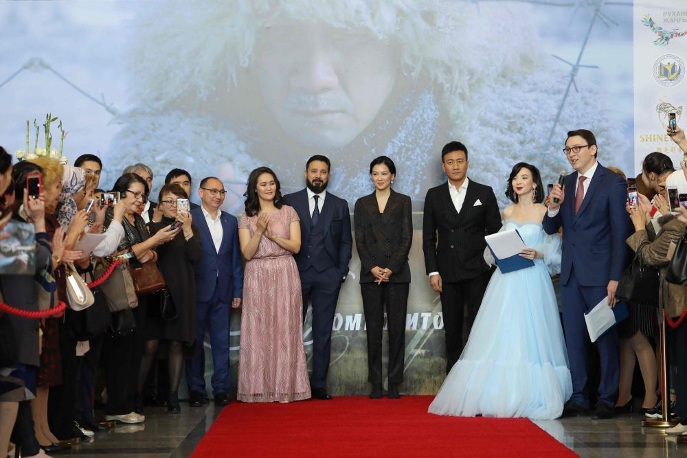 ↑中國(guó)與哈薩克斯坦首部合拍電影《音樂(lè)家》主創(chuàng)人員在努爾蘇丹出席首映式(2019年5月17日攝)。影片講述音樂(lè)家冼星海于二戰(zhàn)期間輾轉(zhuǎn)來(lái)到阿拉木圖,在殘酷環(huán)境下得到哈薩克斯坦音樂(lè)家救助的故事。