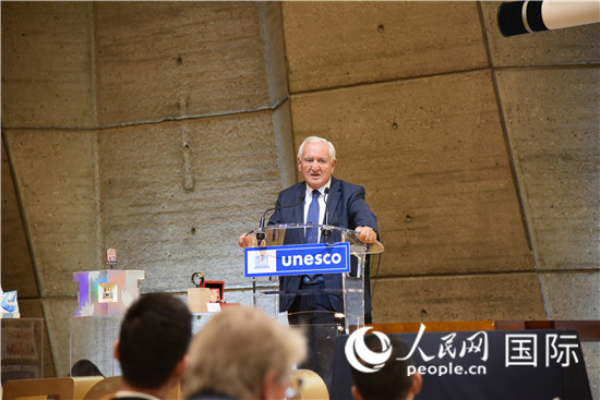 法國前總理拉法蘭在論壇致辭。人民網(wǎng)記者 劉玲玲攝 |