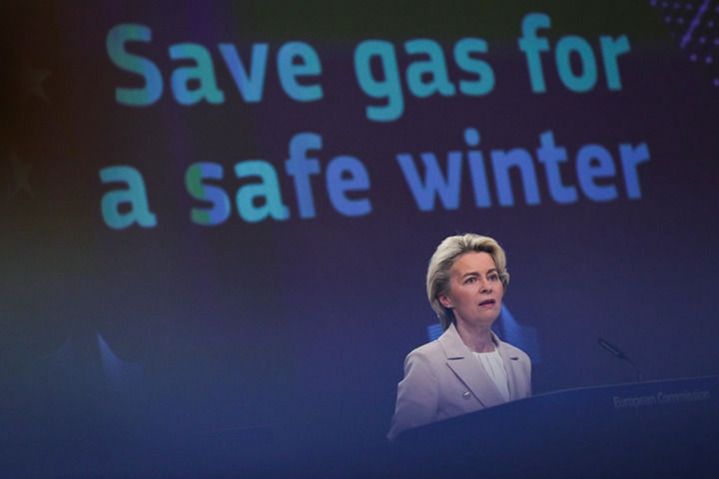 7月20日,在比利時(shí)布魯塞爾,歐盟委員會(huì)主席馮德萊恩在新聞發(fā)布會(huì)上發(fā)言。歐盟委員會(huì)當(dāng)天公布一項(xiàng)提案,提議各成員國(guó)將天然氣使用量減少15%,以應(yīng)對(duì)歐盟面臨的天然氣短缺問(wèn)題。新華社記者鄭煥松攝