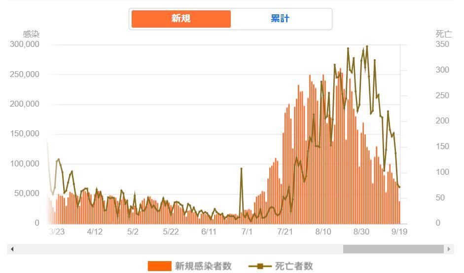人民網(wǎng)東京9月20日電 綜合日媒報(bào)道,9月19日,日本全國(guó)新增新冠肺炎確診病例3萬(wàn)8057例,單日新增時(shí)隔兩個(gè)多月再次降至4萬(wàn)例以下。當(dāng)日新增死亡病例72例,現(xiàn)有重癥病例300例。