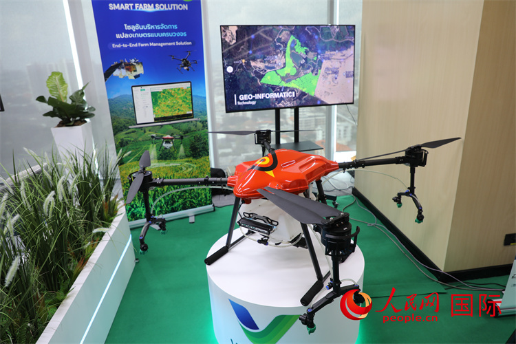 啟動(dòng)儀式現(xiàn)場(chǎng)展示的農(nóng)用噴霧無人機(jī)。人民網(wǎng)記者 趙益普攝 |