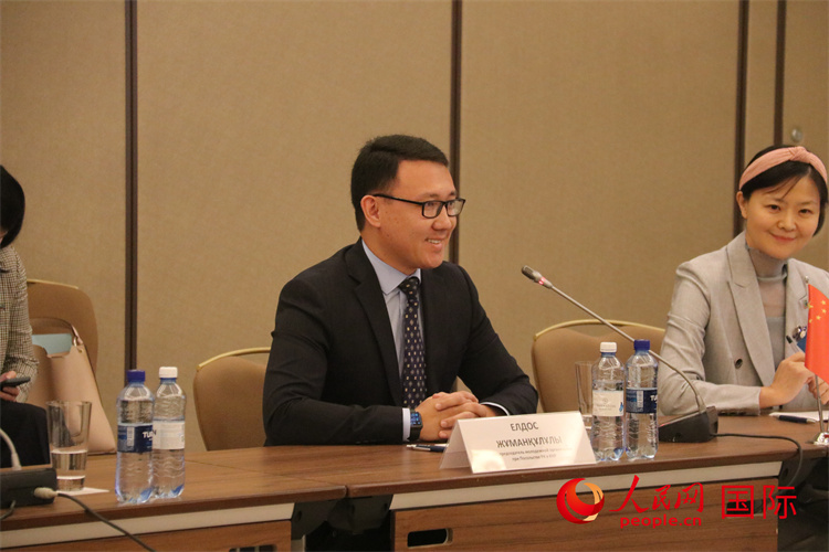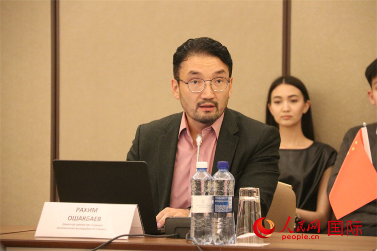 Talap應(yīng)用研究中心負(fù)責(zé)人拉希姆·奧沙克巴耶夫發(fā)言。人民網(wǎng)記者 周翰博攝 |