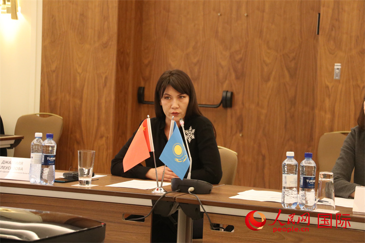 哈薩克斯坦留華畢業(yè)生協(xié)會(huì)主席葉列烏西佐娃發(fā)言。人民網(wǎng)記者 周翰博攝 |