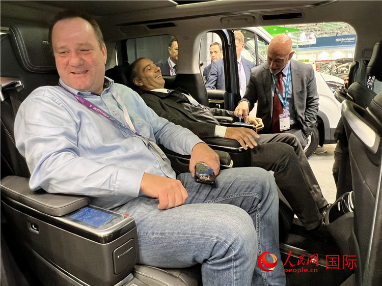 觀眾體驗(yàn)上汽大通最新發(fā)布的電動(dòng)MPV。人民網(wǎng)記者 李強(qiáng)攝 |