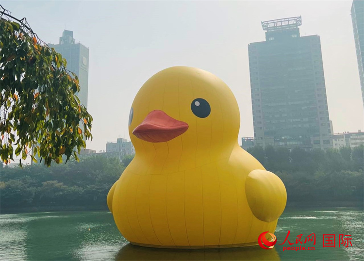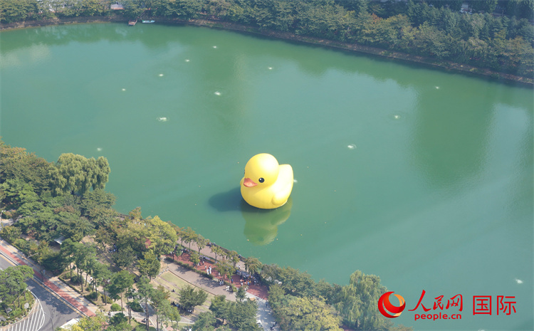 由荷蘭藝術(shù)家弗洛倫泰因·霍夫曼創(chuàng)作的巨型橡皮大黃鴨藝術(shù)品將從9月30日至10月31日在首爾展出。人民網(wǎng)記者 張悅攝
