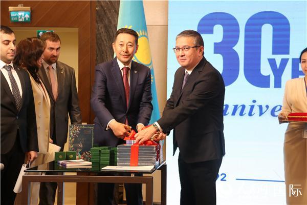 招待會期間,還舉行了《亞洲民間故事》和《亞信地區(qū)生態(tài)旅游指南》新書發(fā)布會,推出了由哈薩克斯坦國家銀行發(fā)行的面值100堅戈的“亞信會議成立30周年紀(jì)念幣”。