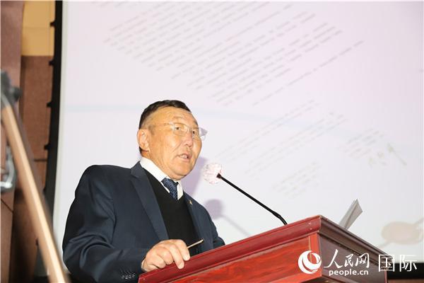 2022年10月7日,蒙古國科學(xué)院副院長楚龍巴特爾致辭。人民網(wǎng)記者 霍文攝