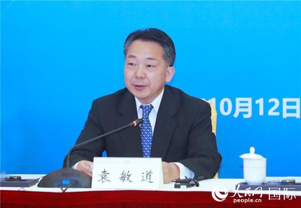 中國(guó)人民對(duì)外友好協(xié)會(huì)副會(huì)長(zhǎng)袁敏道致辭。人民網(wǎng)記者 陳建軍攝