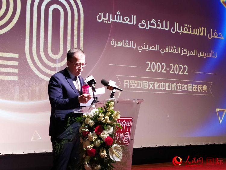 中國駐埃及使館文化參贊兼文化中心主任楊榮浩致辭。人民網(wǎng)記者 黃培昭攝 |
