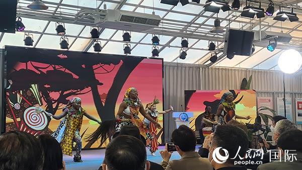 中非舞者跳起熱情歡快的舞蹈。人民網(wǎng)記者萬宇 攝 |