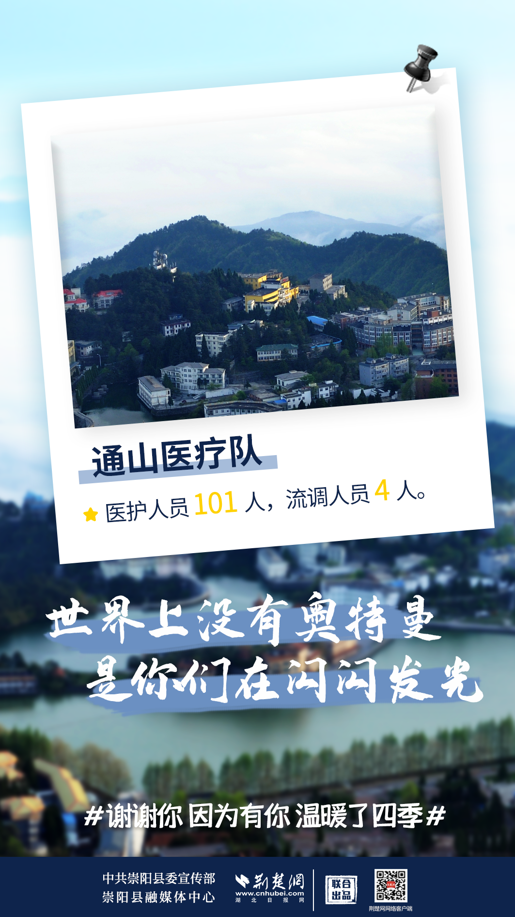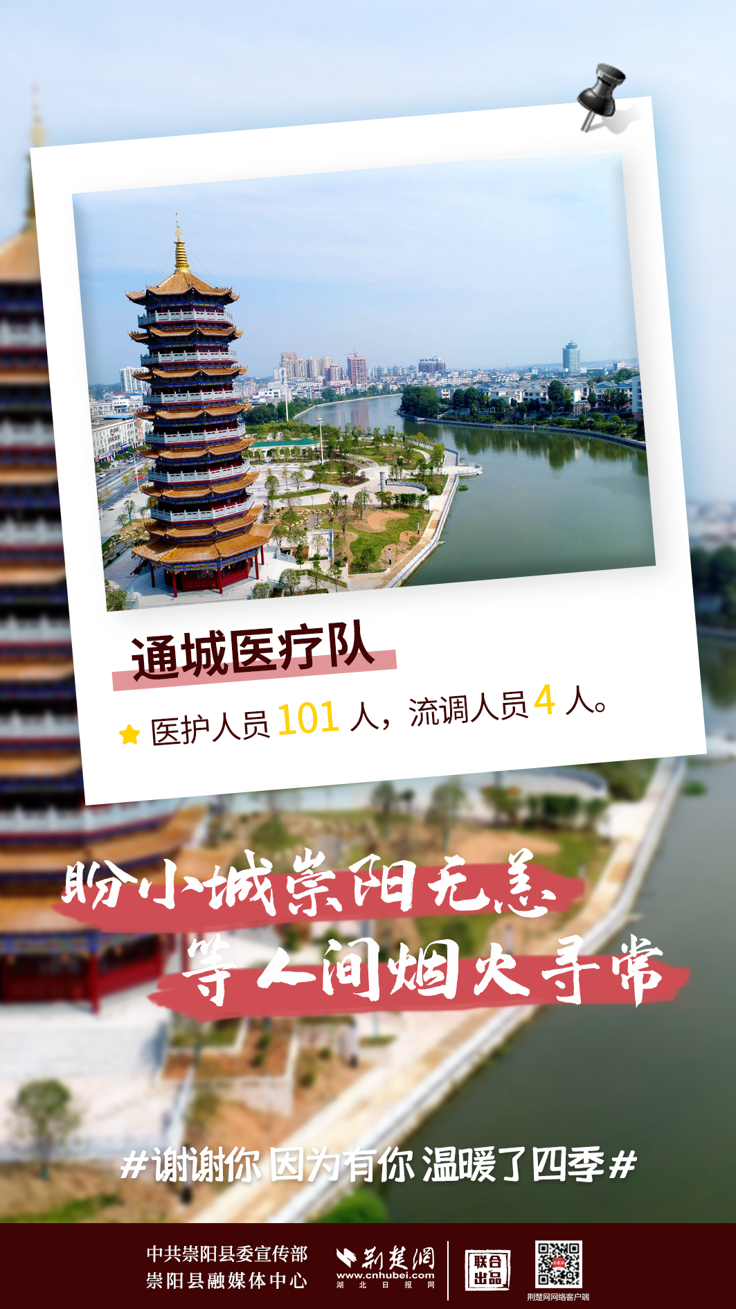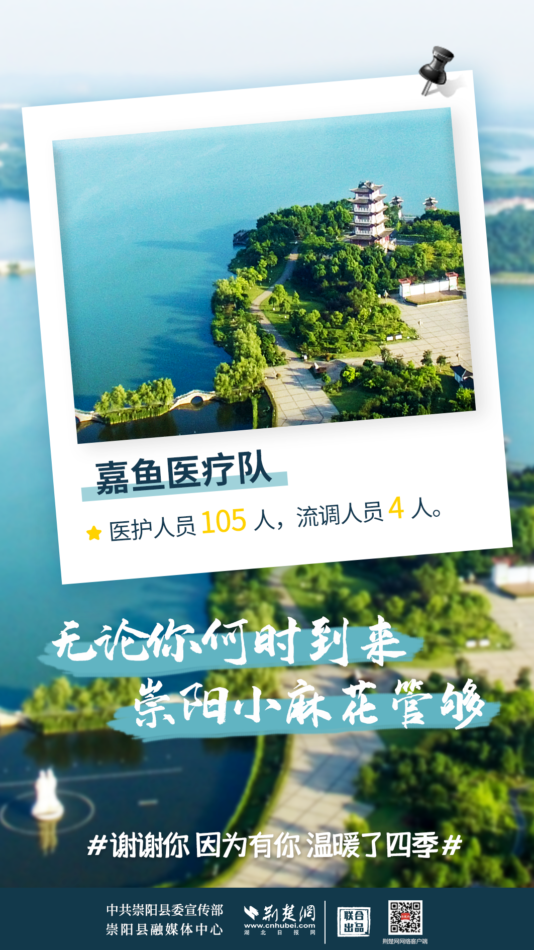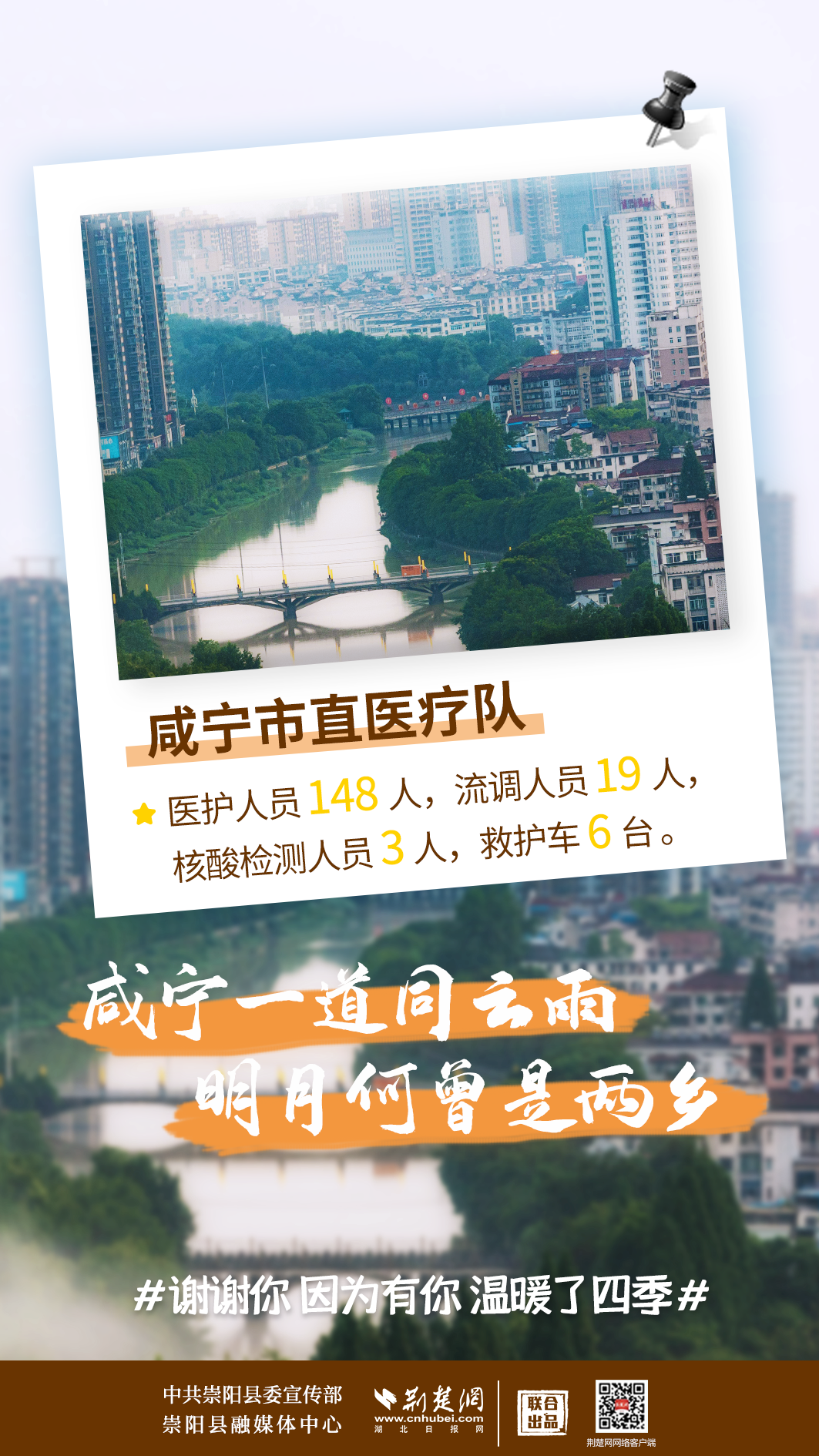 修我甲兵,與子偕行。在崇陽縣疫情防控形勢最嚴峻、最艱難的時刻,來自咸寧市直、通山縣、通城縣、嘉魚縣4支醫(yī)療隊,489名醫(yī)務(wù)人員,火速支援崇陽抗疫,馬不卸鞍,人不解甲,便同51萬崇陽人民一道相守偕行,并肩作戰(zhàn)。