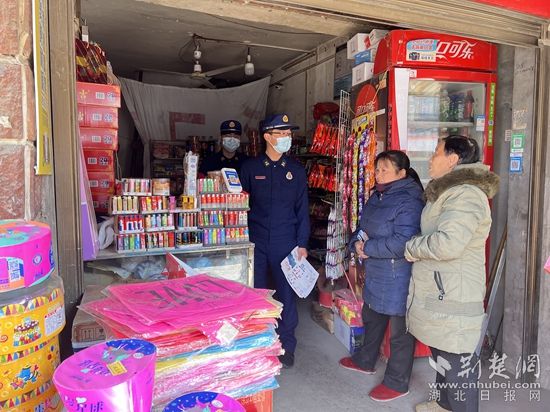 期間,宣傳人員走進轄區(qū)沿街門店、商場市場等人員密集場所,重點對各煙花爆竹銷售場所的產(chǎn)品儲量、是否違規(guī)銷售孔明燈及消防器材配置等情況進行了檢查。