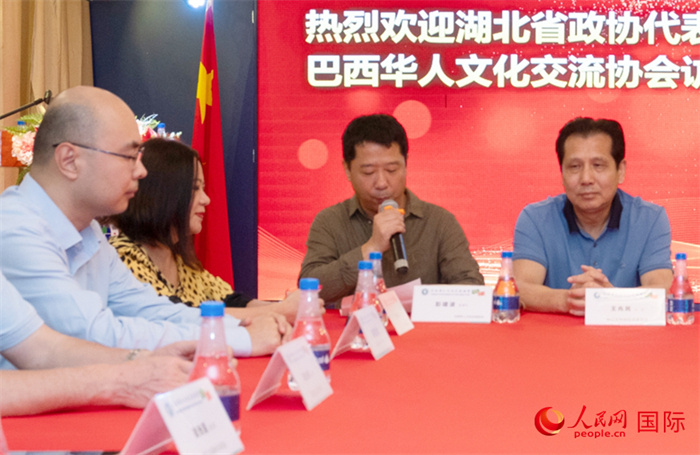 巴西文協(xié)監(jiān)事長彭建波(右二)在座談會上致辭。 人民網(wǎng)記者 陳海琪攝