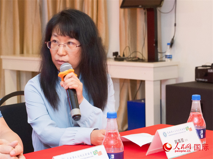 中國駐里約熱內(nèi)盧總領(lǐng)館領(lǐng)僑處處長郭填甜在座談會上致辭。 人民網(wǎng)記者 陳海琪攝