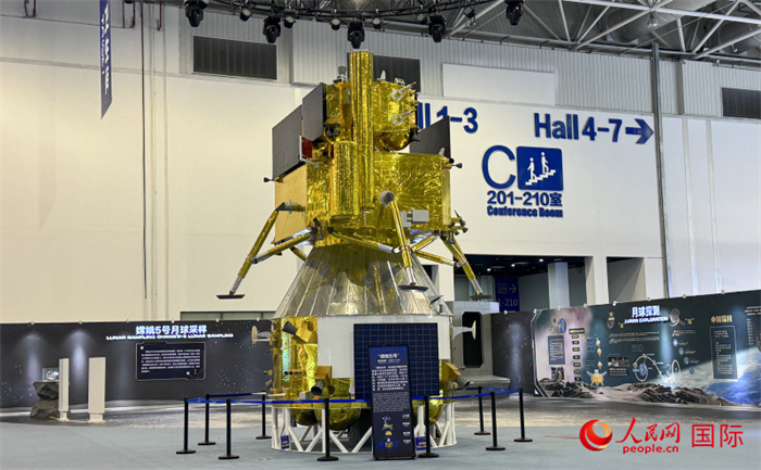 | 航天展區(qū)內(nèi)陳列著嫦娥五號(hào)探測(cè)器模型。人民網(wǎng)記者 張麗鷗攝 |
