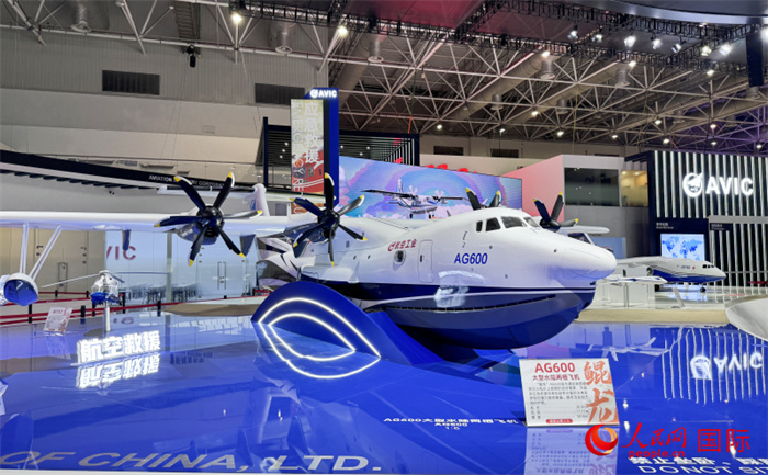 | 大型水陸兩棲飛機(jī)鯤龍AG600模型。人民網(wǎng)記者 張麗鷗攝 |