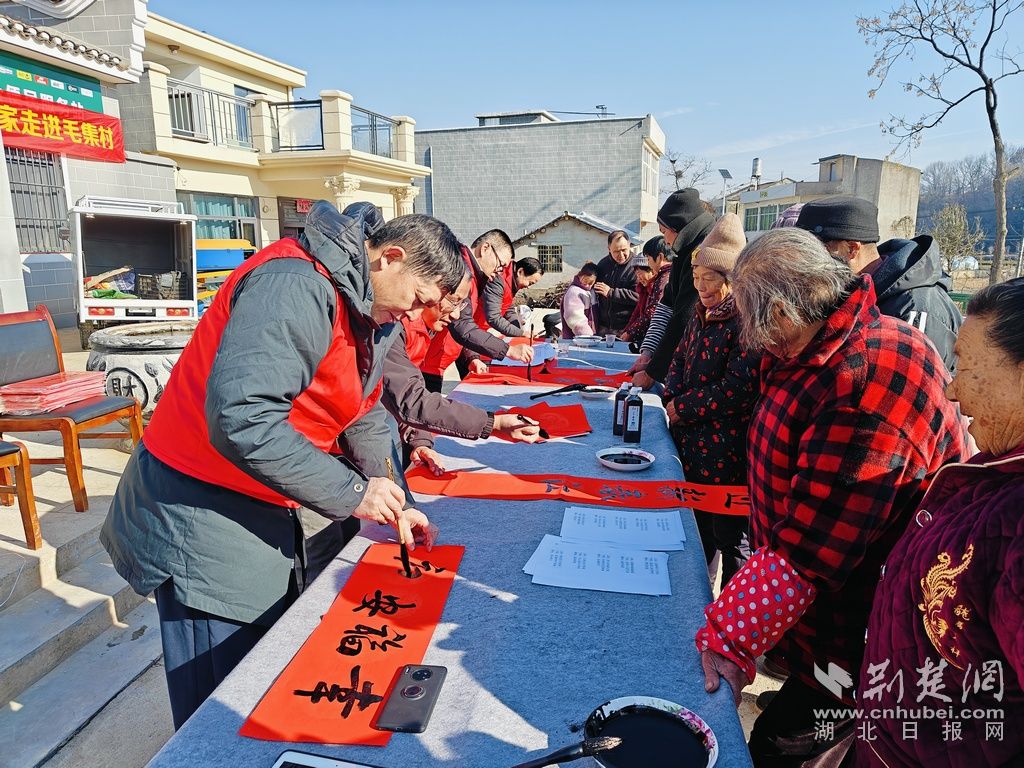 荊楚網(wǎng)(湖北日報網(wǎng))訊(通訊員陳冬青)1月24日,大悟縣新城鎮(zhèn)毛集村在禮山田園開展“情暖毛集送祝福 揮毫潑墨寫春聯(lián)”志愿服務(wù)活動,營造濃厚節(jié)日氛圍。