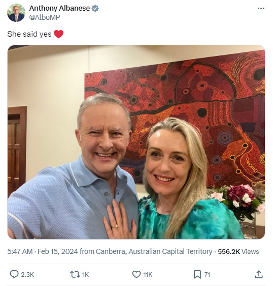 報道稱,現(xiàn)年60歲的阿爾巴尼斯,是首位在任期內(nèi)訂婚的澳大利亞總理。
