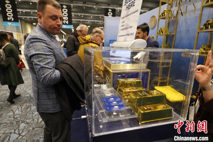 當(dāng)?shù)貢r(shí)間3月2日,加拿大多倫多,在當(dāng)日揭幕的2025年加拿大國際礦業(yè)大會(huì)(PDAC)上,一參展商陳列的金磚吸引參會(huì)者的目光。來自全球的超過1100家參展商參加此次為期4天的展會(huì)?!≈行律缬浾?余瑞冬 攝