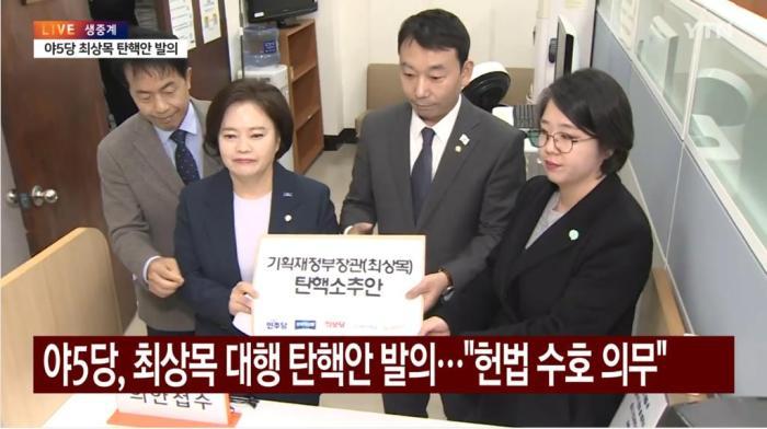 據(jù)韓國YTN電視臺報道,在野黨向國會提請彈劾崔相穆的理由是其“蔑視憲法秩序”。