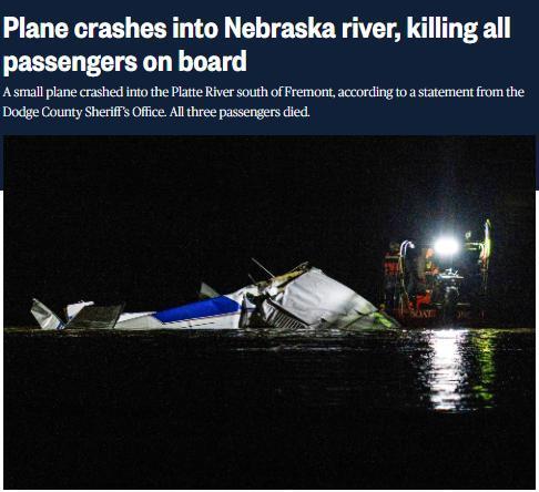 內(nèi)布拉斯加州地方當(dāng)局補充稱,美國聯(lián)邦航空管理局(FAA)和美國國家運輸安全委員會(NTSB)正接手對事故原因調(diào)查。