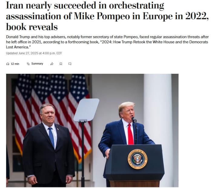 據(jù)報道,這本名為《2024:特朗普如何重新奪回白宮以及民主黨如何失去美國》的新書計劃在7月出版,其中披露了在2022年,伊朗幾乎成功地在歐洲一家酒店暗殺蓬佩奧。