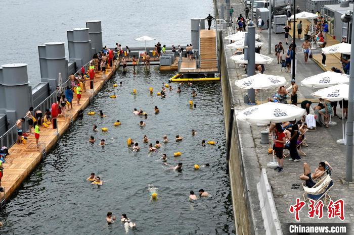當(dāng)?shù)貢r(shí)間7月5日,法國(guó)巴黎時(shí)隔百余年恢復(fù)開放塞納河公眾游泳。圖為民眾在河中一處對(duì)外開放的公共區(qū)域內(nèi)游泳。中新社記者 李洋 攝