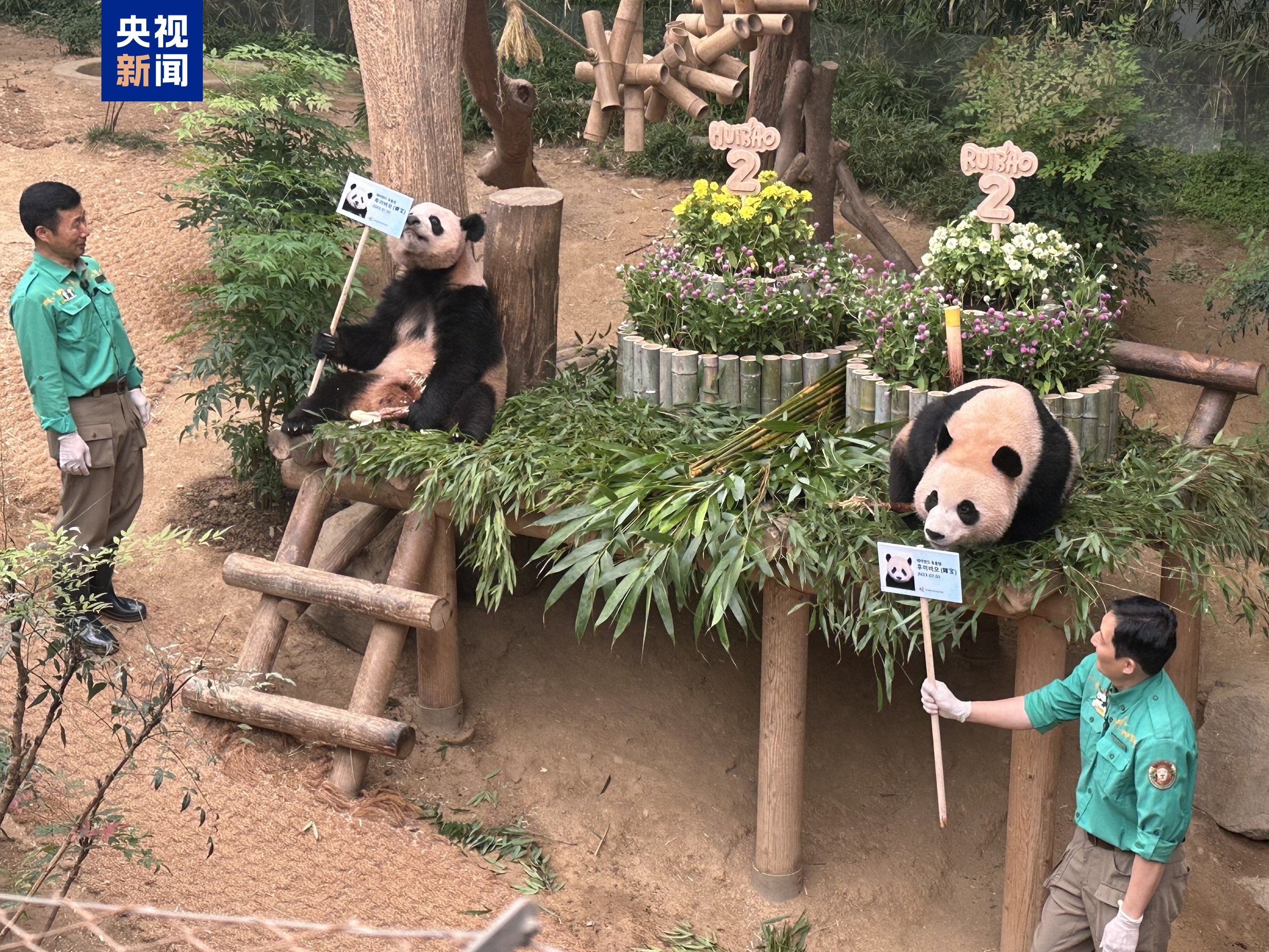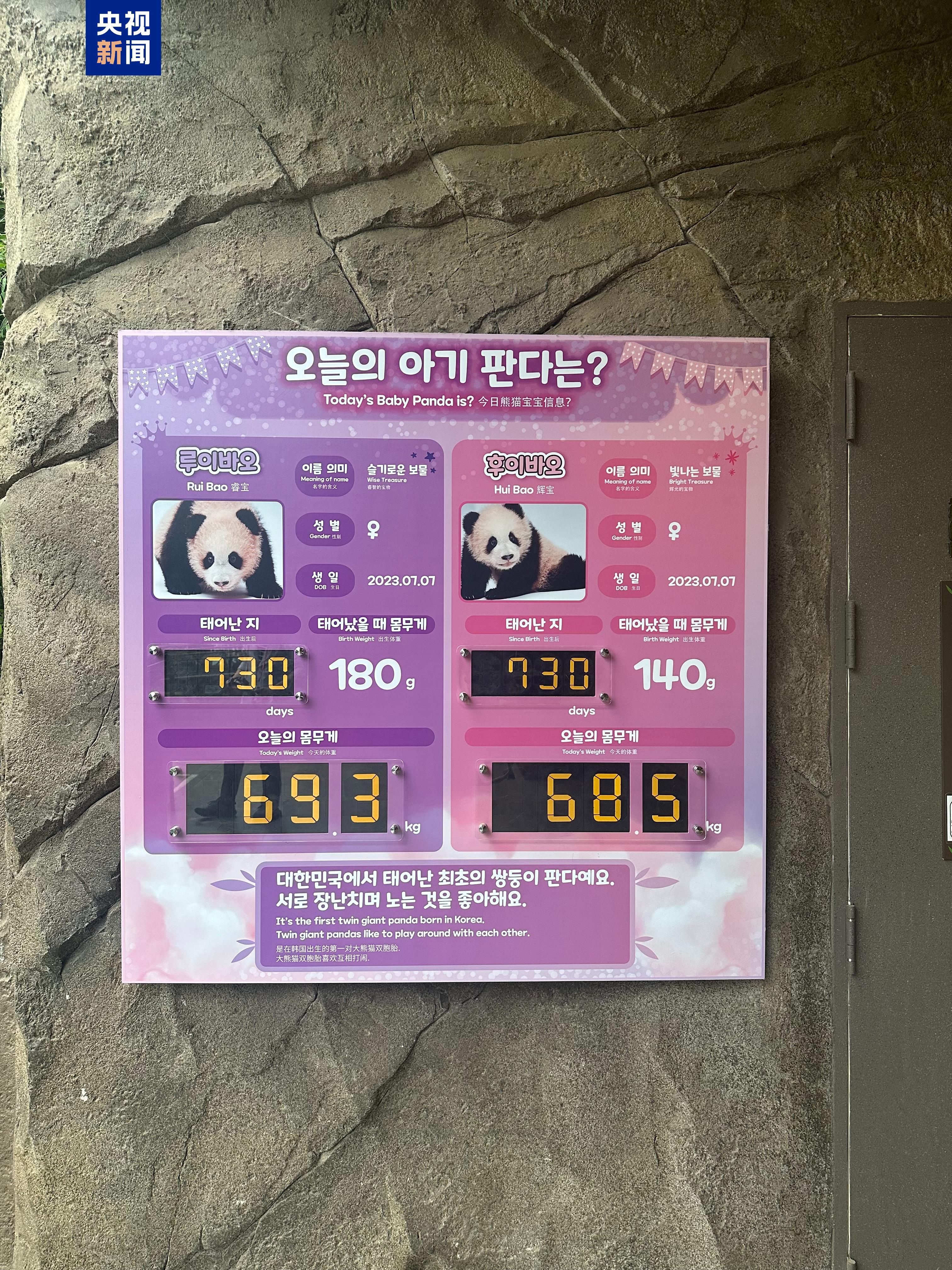 7月7日是旅韓大熊貓“愛寶”“樂寶”的雙胞胎寶寶“睿寶”“輝寶”的兩周歲生日。