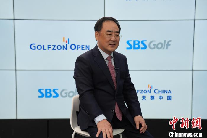 7月14日,“高爾夫尊中國(guó)公開(kāi)賽”賽事轉(zhuǎn)播權(quán)簽約儀式在首爾舉行。圖為高爾夫尊中國(guó)會(huì)長(zhǎng)樸英祚在簽約儀式接受媒體采訪。中新網(wǎng)記者 劉旭 攝