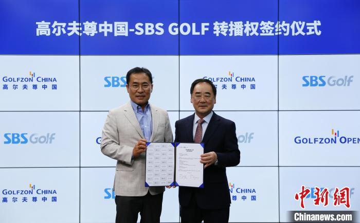 中新網(wǎng)首爾7月14日電 (記者 劉旭)14日,高爾夫尊中國(guó)與韓國(guó)SBS GOLF頻道在首爾舉行“高爾夫尊中國(guó)公開(kāi)賽”賽事轉(zhuǎn)播權(quán)簽約儀式。高爾夫尊中國(guó)會(huì)長(zhǎng)樸英祚、SBS GOLF代表李尚根,分別代表合作雙方簽署協(xié)議。