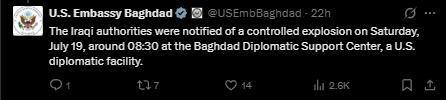 圖片來(lái)源:美國(guó)駐伊拉克巴格達(dá)大使館在其社交媒體賬戶(hù)截圖
